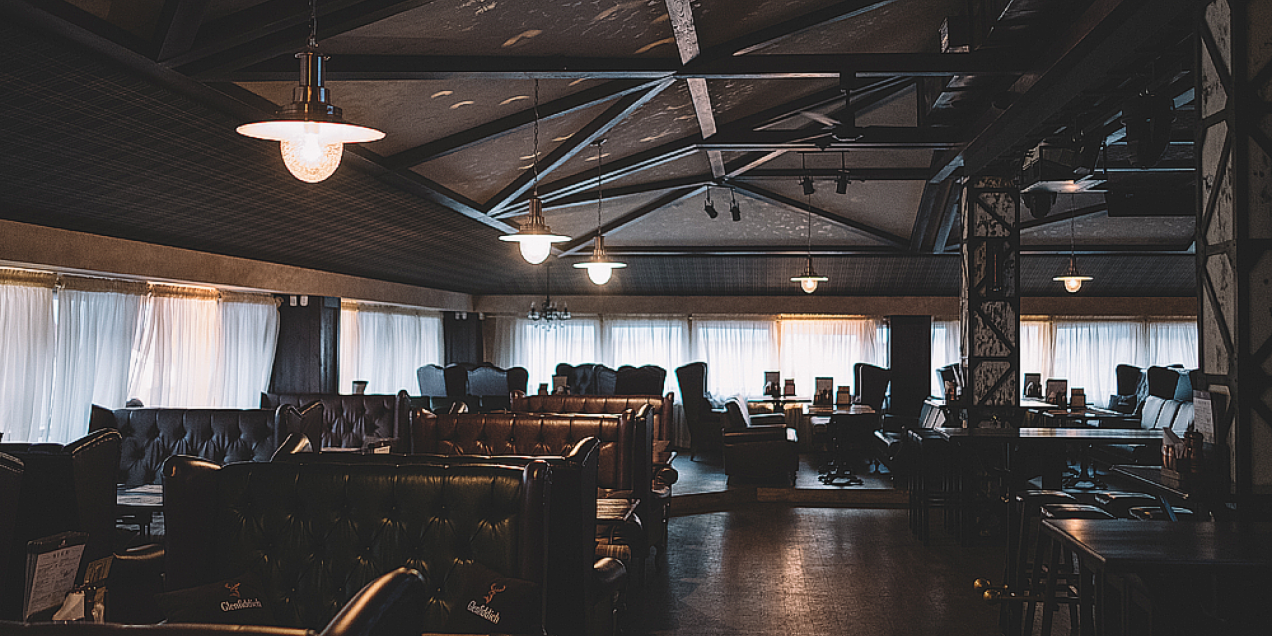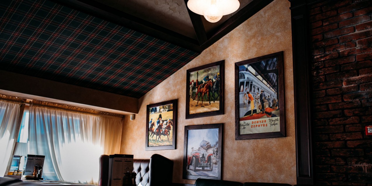 The interior is made in brown and green tones. A Scottish cage on the ceiling, graffiti on the walls, leather sofas and a scene made like a vagon. It is the place that you can comfortably stay with your friends. We have about 100 seats, as well as a large bar area for 25 people.
